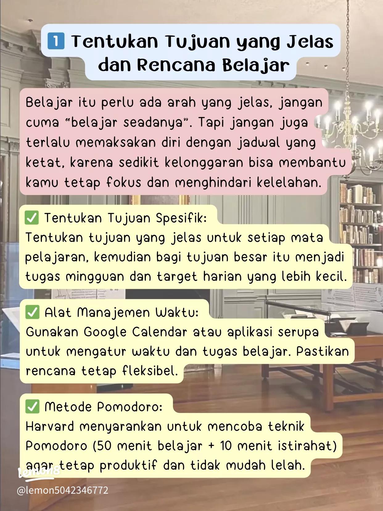Kemudian, Arya menemukan teknik Pomodoro. Dengan dukungan aplikasi berbasis cloud yang terintegrasi dengan kalender digitalnya, Arya menetapkan sesi belajar Bahasa Indonesia selama 25 menit, diikuti istirahat singkat selama 5 menit. Aplikasi tersebut menyediakan pengingat visual dan audio yang halus, membantunya tetap fokus pada tugas yang sedang dikerjakan: memahami struktur kalimat kompleks dalam cerpen, misalnya.